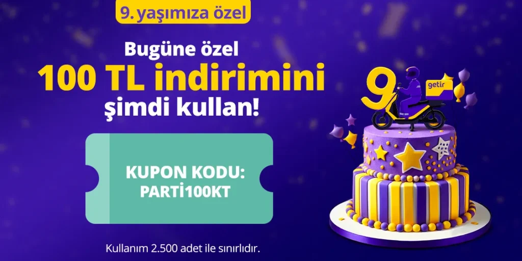 Getir 9. Yılına Özel İndirim Kodu – 9 Ağustos Kupon Kodu